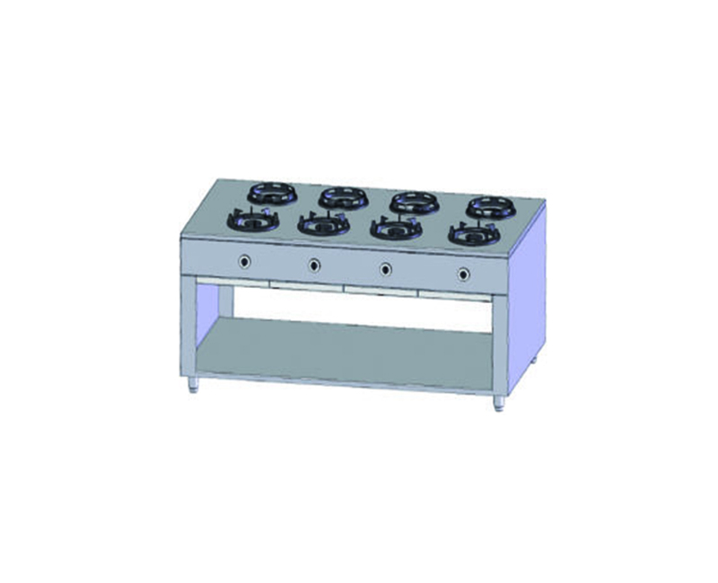 China Herde, 8 Brenner – mit offenem Unterbau, zweiseitig bedienbar, 128 kW