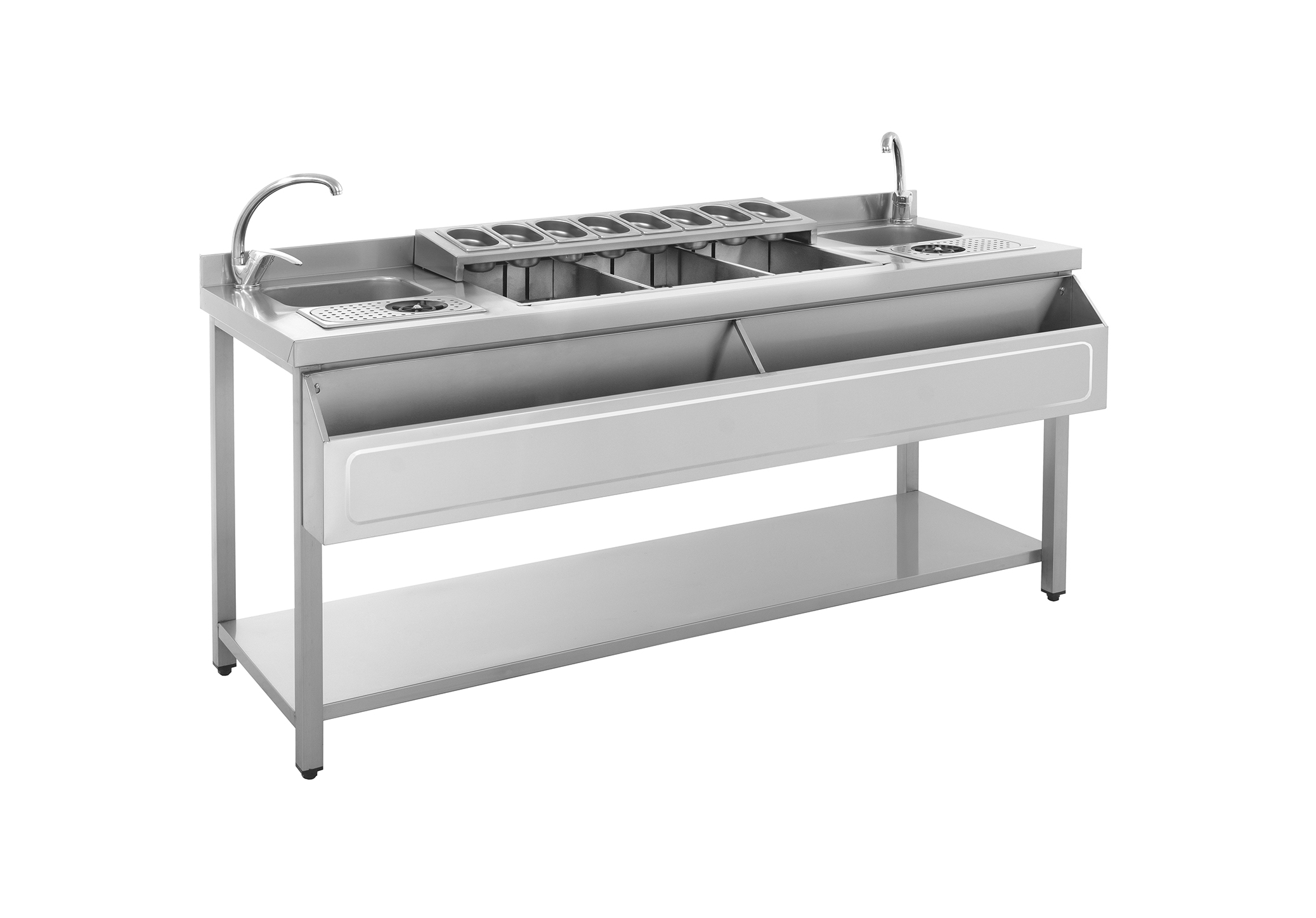 Eine Bar-Station ist ein Bereich in einer Bar oder bei Veranstaltungen, an dem Getränke zubereitet und serviert werden. Sie umfasst eine Theke, Spirituosen, Gläser und Barzubehör. Eine Cocktailstation ist eine spezialisierte Art der Bar-Station, die sich auf die Zubereitung von Cocktails konzentriert. Hier finden sich spezielle Zutaten und Werkzeuge für das Mixen von Cocktails sowie Gläser und Dekorationen, die für die kreative Zubereitung von Getränken notwendig sind. Beide Stationen dienen der effizienten Bedienung von Gästen und der Zubereitung von Getränken.