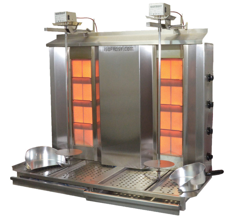 Dönerspieß Gerät Gas Serie – Bestückung: 2 x 70kg – Stellfläche: 1000 x 700 mm – Höhe: 1006 mm – Leistung: 32 kW