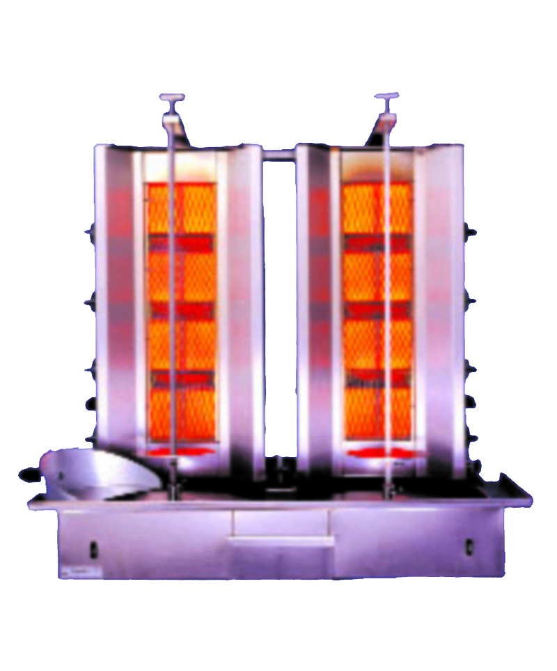 Dönerspieß Gerät Gas Serie – Bestückung: 2 x 70kg – Stellfläche: 950 x 660 mm – Höhe: 1100 mm – Leistung: 32 kW