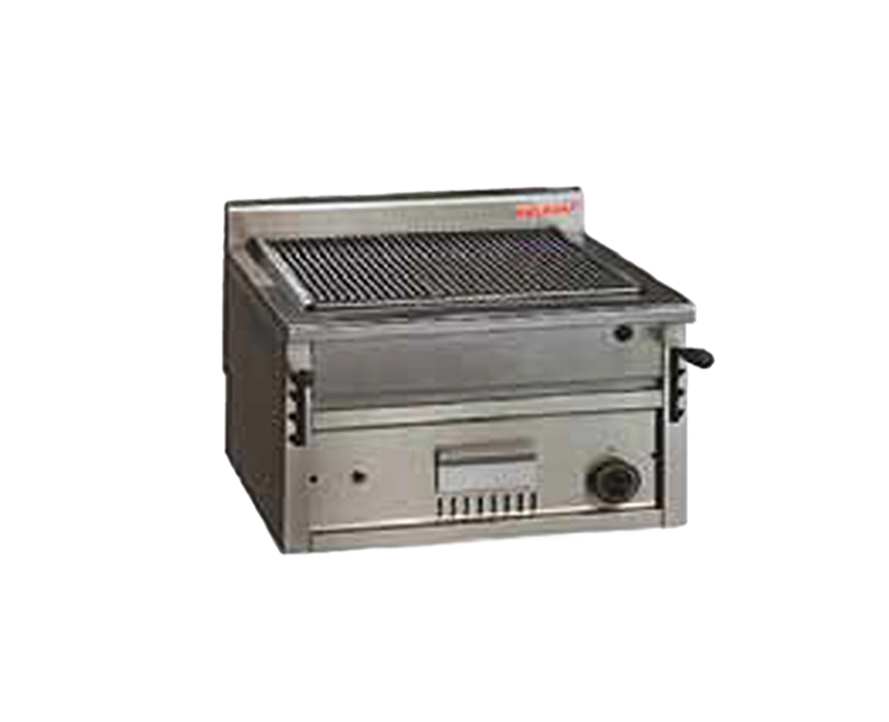 Garen durch geschützte Gasbrenner aus Stahlrohr. Die Brenner sind mit Sicherheitsventilen gesteuert und erhitzen den Lavastein, der auf einer Halterung aus gestrecktem Spezialgitter aufliegt. Die Grillfläche ist mit zwei Hebeln höhenverstellbar. Ein Herausnehmbarer Behälter zum Auffangen von Fett oder Asche ist vorhanden.