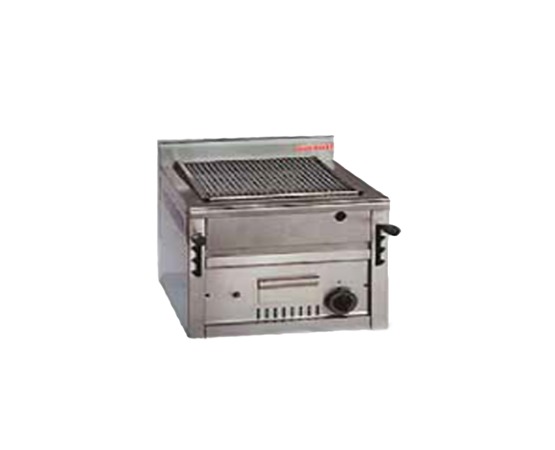 Garen durch geschützte Gasbrenner aus Stahlrohr. Die Brenner sind mit Sicherheitsventilen gesteuert und erhitzen den Lavastein, der auf einer Halterung aus gestrecktem Spezialgitter aufliegt. Die Grillfläche ist mit zwei Hebeln höhenverstellbar. Ein Herausnehmbarer Behälter zum Auffangen von Fett oder Asche ist vorhanden.