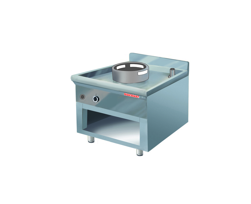 Wok Herd Wand, 4 Brenner – mit offenem Unterbau, einseitig bedienbar, 64 kW