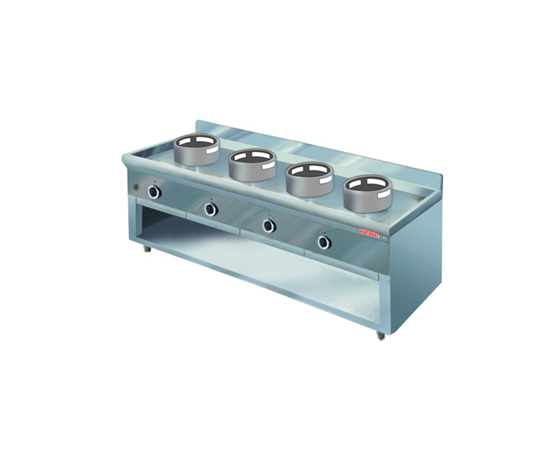 China Herde, 8 Brenner – mit offenem Unterbau, zweiseitig bedienbar, 128 kW